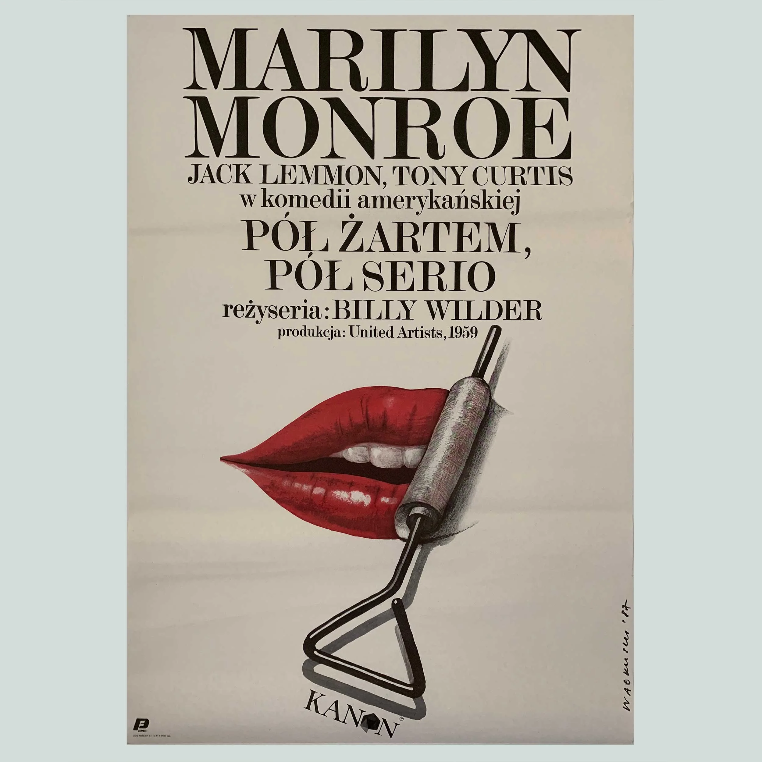 We dare you not to love this original 1987 Polish poster design for total film classic ‘Some Like it Hot’ (Pol Zartem Pol Serio) starring Marilyn Monroe! Those lips :) It was designed by Mieczyslaw Walkuski for the cinematic re-release of the film.
